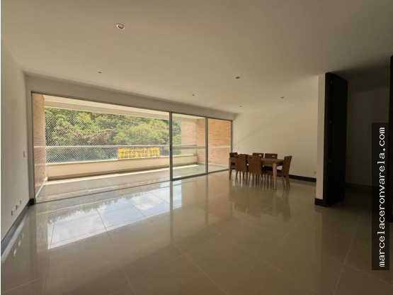 Tiene 220 mt2, tres alcobas cada una con baño completo, (Alcoba principal adicionalmente con vestier) baño social, alcoba de servicio con baño completo, doble balcón, estudio, dos parqueaderos independientes y depósito.